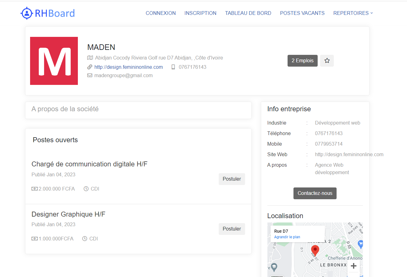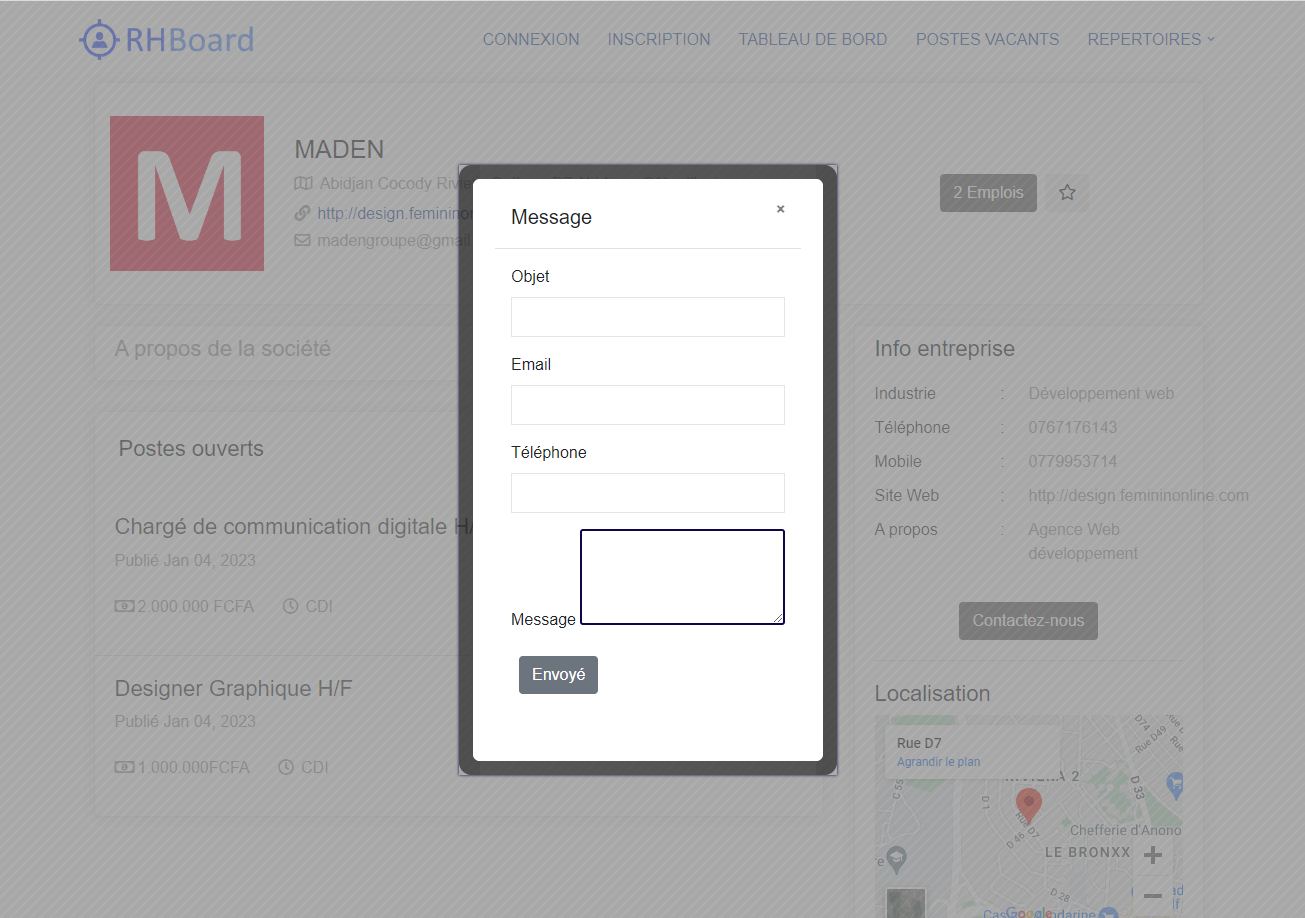 • Pour envoyer un message à un recruteur, cliquez sur le bouton [Contactez nous]