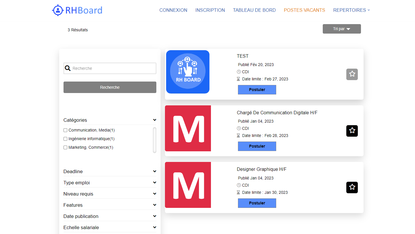 • Utilisez le bouton [Postuler] pour candidater.